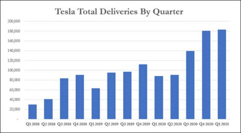 炣燃科技4月6日讯(安迪)特斯拉日前公布了最新的产销成绩单。尽管受加州弗雷蒙特工厂火灾,零部件短缺、缺芯潮、疫情等因素导致工厂临时关闭,特斯拉2021年第一季度新车销量仍达184,800辆,产量达180,338辆,打破了特斯拉在2020年第四季度创下的180,570辆的交付纪录,并超出机构预期。值得注意的是,2021年第一季度特斯拉生产的所有电动汽车均为Model 3和ModelY车型。此外,3月国内一线造车新势力厂商小鹏、理想、蔚来三大造车新势力表现抢眼,合计销量达17,259辆,同比增长327.73%,环比增长70.86%;一季度三大造车新势力合计销量达45,979辆,同比增长410.59%,环比增长2.68%。