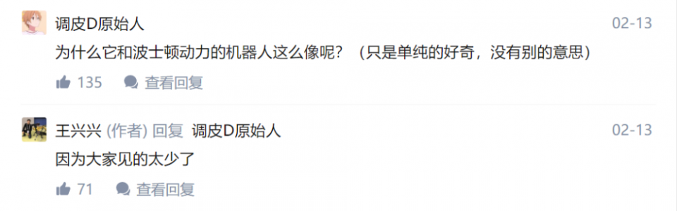 不过,开头提到的宇树科技也遭到了类似的网友攻击,比如有知乎网友问:“为什么它和波士顿动力的机器人这么像呢?”