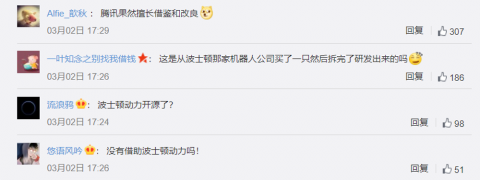 还有网友直接评论:“没有借助波士顿动力吗?”