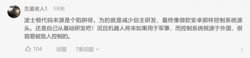 数以万计的网友质疑到,这不是用了国际机器人厂商波士顿动力的开源技术?中国的技术和外国差了多少条街?许多评论区公然“开撕”。
