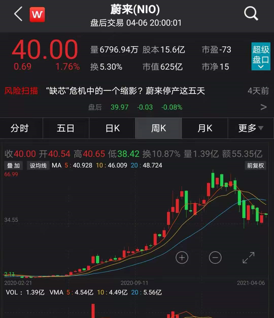 从股价来看,昨晚蔚来上涨1.76%,最新股价40美元美股,市值625亿美元,(近4100亿人民币)。