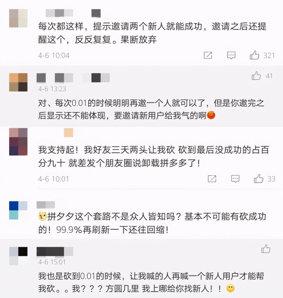 对于消费者反映的“始终差0.09%”,实际情况是“已砍99.1%,还差0.9%”,因为部分免费砍的商品金额较大,拉少量用户砍掉的金额不足以让百分比产生变化,会让消费者以为砍价没有变化。