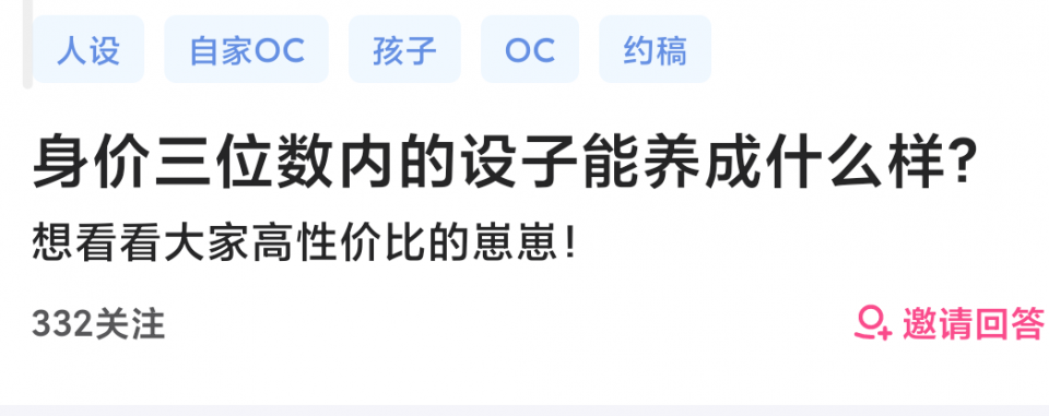 “半次元”App中有一个主题为“入设圈后的花销”的问答,提供了一个答案:在58个回答中,许多玩家的花销都达到了一万以上,部分甚至达到了7、8万,大多数人都拥有两个以上身价上千的“孩子”。而人设图约稿是“提高身价”的主要方式。