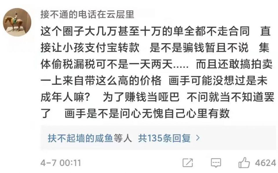 “未成年”和“巨款消费”两个元素挑拨着大众的神经,话题随即在各大社交媒体平台引爆,引发大批网友围观。他们满是疑惑:高价买画往往发生在拍卖行和画廊,在网上约稿也能花这么多钱吗?