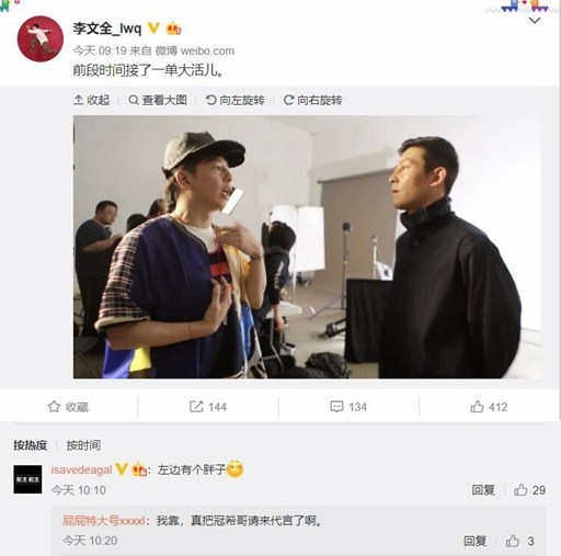 从该设计师晒出的图片来看,陈冠希和罗永浩同框,看起来是在拍广告的现场,那么双方到底是合作了什么?根据之前罗永浩的说法,与陈冠希的合作将会是电子烟领域。目前双方都还没有回应此事。
