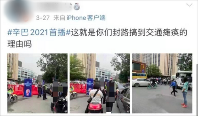 此前,多名网友爆料,3月27日,辛巴团队的复出直播派出保安“封路”。有市民要通过周边道路时,被保安人员盘问要求出示证件,影响市民出行。