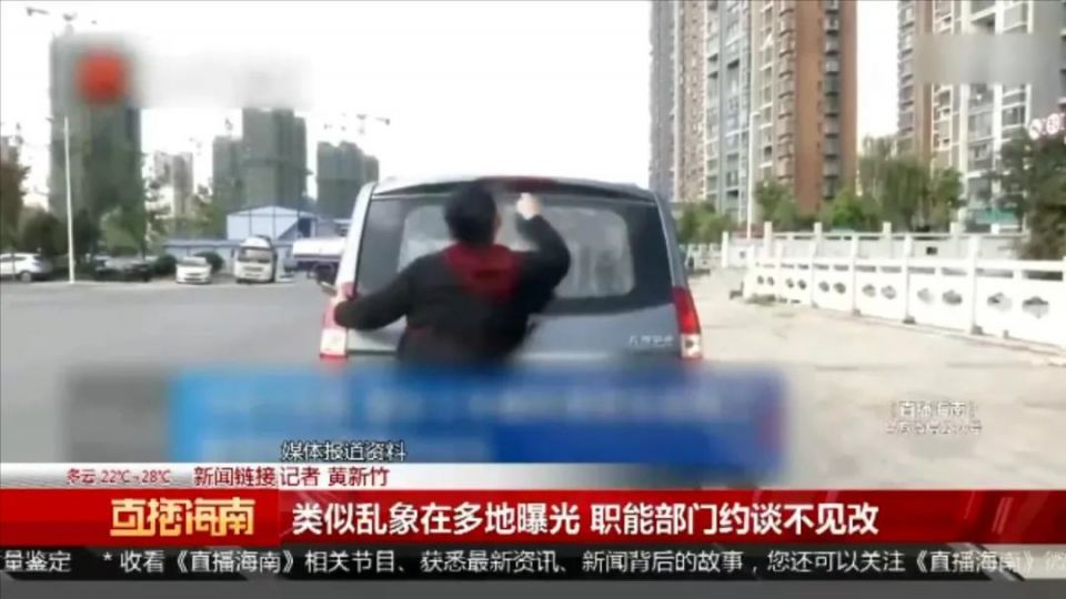 海口市公安局交警支队秀英大队五中队 民警 郑浩然:这辆车是把这个广告贴在它这个后视玻璃上,就是你在驾驶的时候会影响你看后边的视线,影响驾驶安全。只要有玻璃的是绝对不可以贴的,如果是封闭式货车它是可以贴的,但是不能超过三分之一。