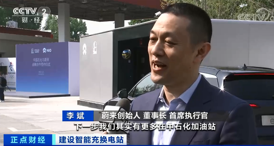蔚来创始人 董事长 首席执行官 李斌:也是个起点,下一步我们有更多在中石化加油站部署蔚来换电站的计划,像北京、上海、长三角、珠三角我们用户保有量比较大的地方,还有一个就是在高速上。
