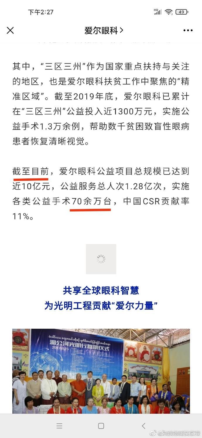 6.爱尔眼科平均每一家医疗机构的医生只有十余名,是明显不足的。市场部出门义诊通常是凌晨5点多钟就要出门,因为到了现场还要布置做准备,非常辛苦。参与义诊的真正的医生很少,多是没有医学知识的市场部人员。这些人到了社区、农村、街道,有资质和能力判断老百姓(64.040,0.16,0.25%)真正的眼科病情吗?