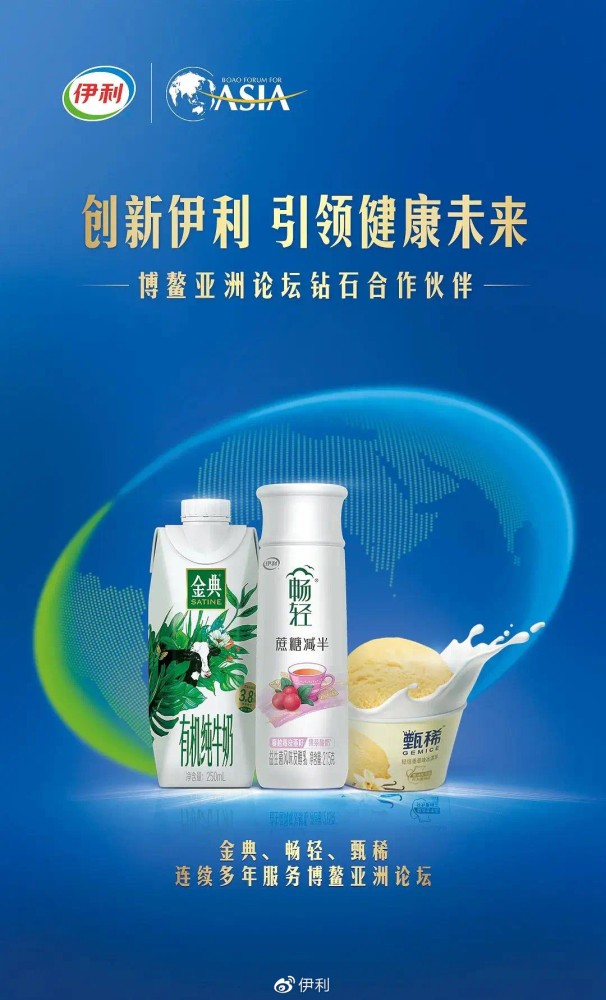 相关宣传中提到,伊利的“金典全系列牛奶”、“畅轻酸奶”、“甄稀冰淇淋”成为“博鳌亚洲论坛2021年年度会议唯一指定牛奶”、“博鳌亚洲论坛2021年年度会议唯一指定酸奶”及“博鳌亚洲论坛2021年年度会议唯一指定冰淇淋”。