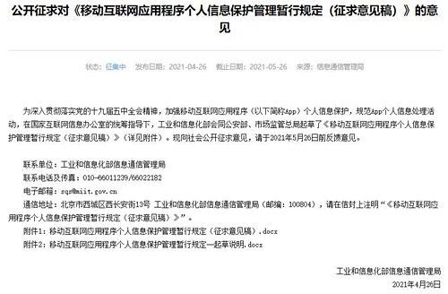 炣燃科技4月27日讯(安迪)工信部网站26日消息,工信部会同公安部、市场监管总局起草了《移动互联网应用程序个人信息保护管理暂行规定(征求意见稿)》(以下简称《征求意见稿》),现向社会公开征求意见。