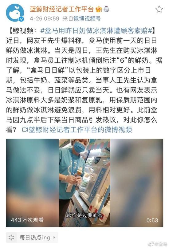 关于#盒马用昨日奶做冰淇淋遭顾客索赔#的一些说明。视频中用于制作鲜奶冰淇淋的确实是前一天的日日鲜牛奶。