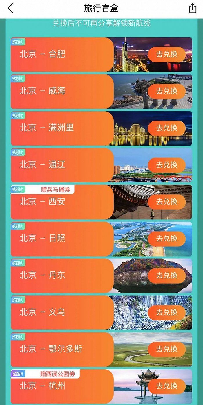 盲盒也期望通过社交渗透提高知名度,帮助活动破圈。在各家OTA推出的玩法中,也有邀请3-6人好友助力的方式,可为用户提供更多开盲盒目的地,通过社交传播带来更高的参与度。