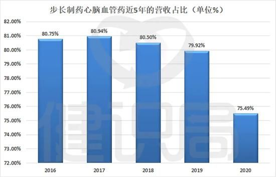 2020年,心脑血管药为步长制药贡献了120.83亿元,占总营收的75.49%,具体而言,丹红注射液、脑心通胶囊、稳心颗粒三大独家品种,是步长制药的收入支柱。