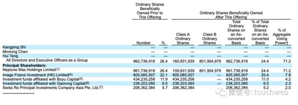 腾讯是股东,创始团队拥有71.2%投票权