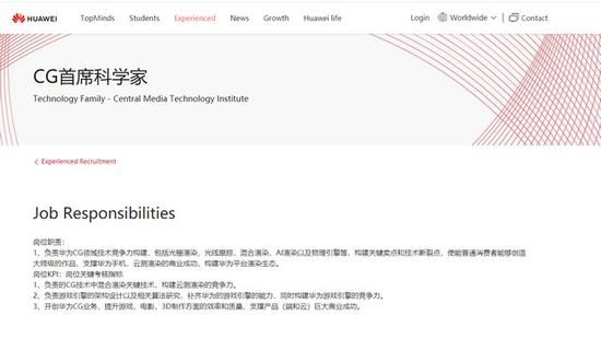 在中央媒体技术院的CG首席科学家的招聘信息中,有明确的写道“开创华为CG业务,提升游戏,电影,3D制作方面的效率和质量”,“使能普通消费者能够创造大师级的作品,支撑华为手机,云测渲染的商业成功,构建华为平台渲染生态”。