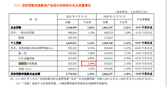值得注意的是,相比较该行其他贷款类业务,信用卡贷款不良率为最高。
