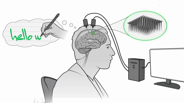 在这项研究中,T5同样需要集中精力,试图用一支假想的笔在假想的本子上写出单个字母。他把每个字母重复10次,让软件“学习”识别与他尝试写那个特定字母相关的神经信号。