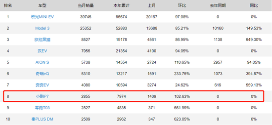 据财报数据显示,小鹏P7上月销量为2995辆,相比于3月销量环比仅增长了4.9%,甚至都没有超越今年1月份3710辆的销量成绩。