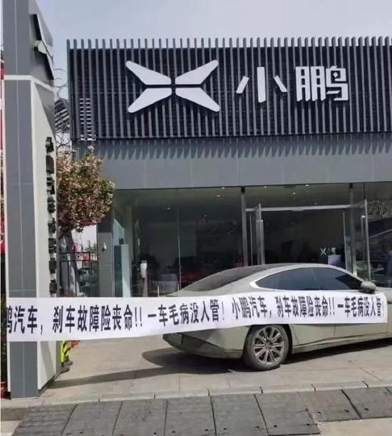 本月8日,一张小鹏P7车主维权的图片出现在众多新能源汽车微信群中,图片上显示一辆P7停在了小鹏门店门前,在车前拉着一条写着“小鹏汽车,刹车故障险伤命,一车毛病没人管”的条幅。
