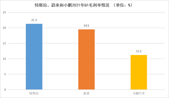 据公开数据显示,特斯拉今年一季度实现毛利率为21.3%,蔚来同期毛利率紧随其后为19.5%。