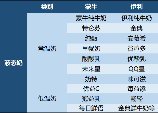 *蒙牛与伊利液态奶产品对比