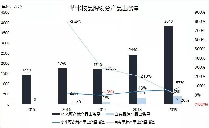 尽管近年来华米科技自主品牌产品的比例一直在上升,但来自小米可穿戴产品的收入仍然占到了公司总营收的半数以上。