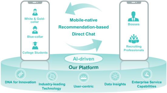 据招股书介绍,该公司具有行业开创性的直聘模式,提升了企业招聘与个人求职效率。直聘模式以移动端为核心、以智能匹配为基础、让求职者与企业端用户进行线上直聊。该公司秉持高度尊重求职者的经营理念,求职者可选择性地对企业端用户隐藏信息;经求职者确认许可后,企业端用户才能访问求职者联系方式和完整简历。