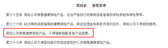 显然,健康尊享捆绑更加昂贵的长期主险销售,也是不符合相关监管要求规定的。