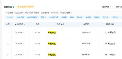 此外,中邮恒泰药业有限公司已在去年11月申请注册“邮氧的茶”的商标。