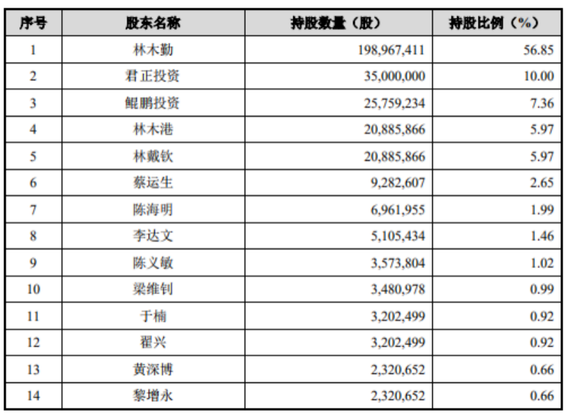 招股书显示,排在东鹏饮料第三的股东—鲲鹏投资持有东鹏饮料7.36%的股份,而鲲鹏投资背后的实控人就是林木勤的儿子林煜鹏,父子二人持有鲲鹏投资63.06%的股份,林煜鹏为最终受益人。