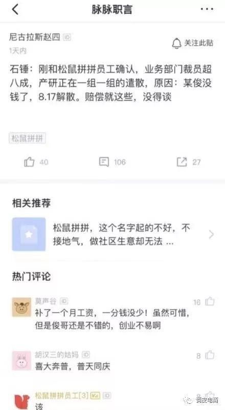 2019年社区团购进入短暂洗牌期,部分社区团购平台关停。8月,脉脉有匿名用户称“刚刚和松鼠拼拼员工确认,业务部门裁员超过八成,产研正在一组一组的遣散”;同年11月,呆萝卜承认“经营不善导致资金紧张”,并于2020年1月正式申请破产重整。张书乐分析指出,此时的社区团购以生鲜电商之名进击社区层面线下市场,但由于价格难以真正降低,而没能打开市场。