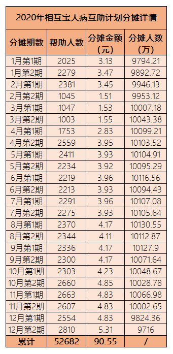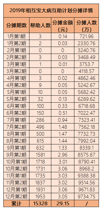 记者注意到,自去年9月以来,相互宝大病互助计划的会员规模已出现逐月减少的趋势,最新一期分摊人数已较年初减少逾1400万人。