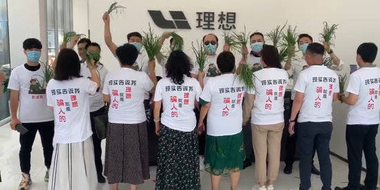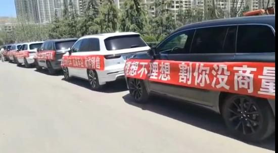 除此之外,还有不少认为受到销售欺诈的老车主还采取了聚集到理想门店和拉横幅车队游行的维权行为。