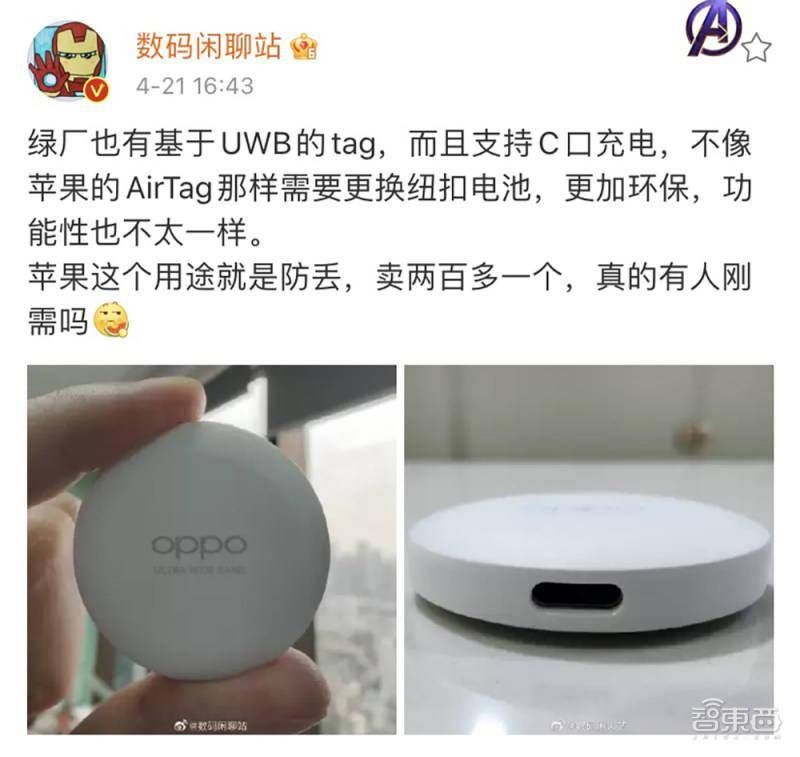 其中在今年4月下旬,网络上有人曝光了OPPO的工程版Tag产品,据称同样基于UWB技术,但采用的是USB接口充电的方式,预计今年内发售。