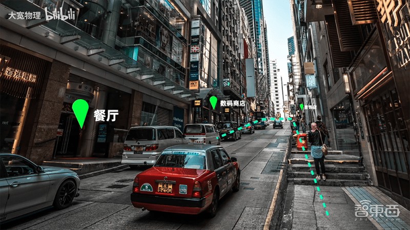 例如, B站up主“大宽物理”就畅想着,行业期待多年的苹果AR眼镜或许能利用UWB技术将现实和虚拟结合,未来路上各个商店都配备一个类似AirTag的设备作为信标,用户只需戴上AR眼镜,就能直接查看路上商店信息,甚至直接标记路线导航。