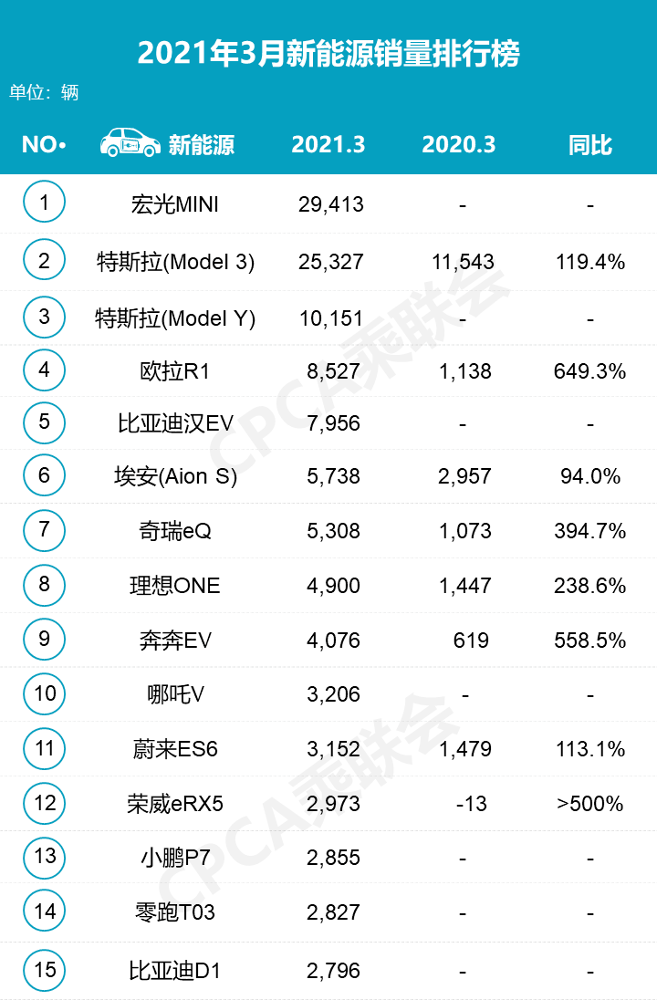 以国内市场为例,虽然特斯拉在国内市场销量一直处于领先地位,但特斯拉销量最大的对手并非造车新势力,而是传统车企长城汽车和五菱汽车。今年3月,长城欧拉黑猫销量跃升至新能源汽车榜单第4位,仅次于五菱MINIEV和特斯拉Model3、ModelY。
