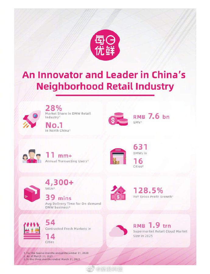 今年3月,每日优鲜发布“(前置仓即时零售+智慧菜场)x零售云“新战略,通过多业态布局,发力”成为中国最大的社区零售数字化平台“。