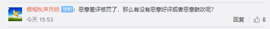 对此,有网友评论称:“这就是恶意评价,如果人人都可以胡乱抹黑一个品牌,那要法律何用?”
