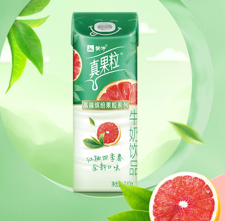 真果粒牛奶乳品红柚四季春口味,精选优质乌龙茶,茶香四溢,辅之以进口红西柚,果味宜人,茶果相遇,带来缤纷乐趣,多重味蕾碰撞!营养早餐、欢聚美味、惬意休闲,有它加入即可增添双倍乐趣!