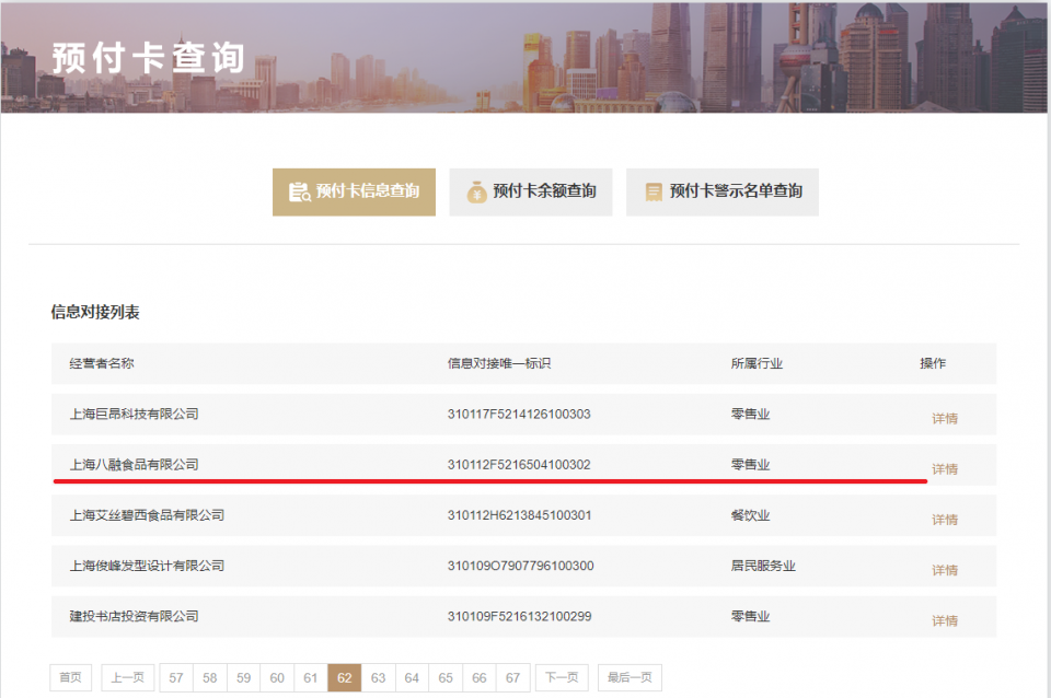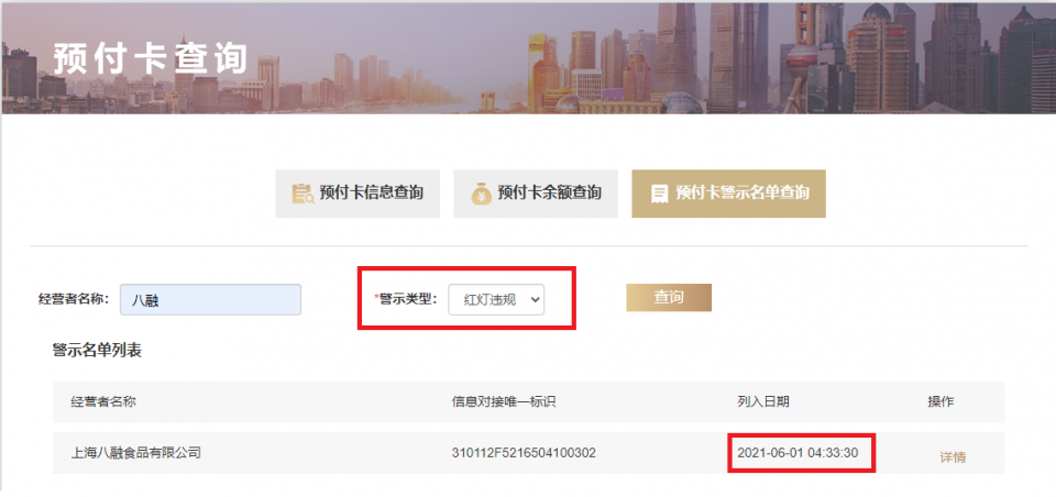 上海八融食品有限公司(宜芝多)发放的单用途预付消费卡在上海备案过,本月初,刚被列入预付卡警示名单,类型为“红灯违规”