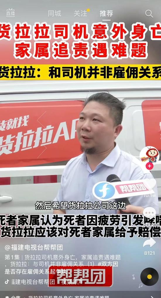 货拉拉相关负责人表示,平台只是属于提供居间服务的,双方不是属于劳动关系,平台也没有强制司机去接单,都是靠司机自主接单的。