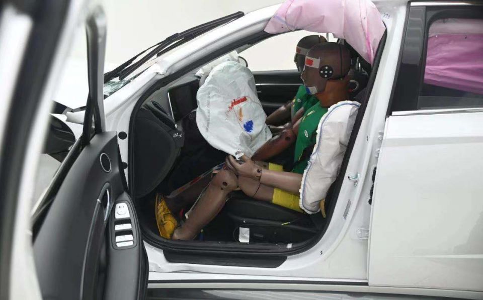 截至发稿,C-NCAP官网仅发布了100%正面刚性壁障碰撞的现场视频及照片,但其余试验现场照片已经在网络上不胫而走,特别是难度最高的40%正面偏置碰撞试验相关照片。
