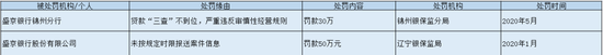 盛京银行罚单不断