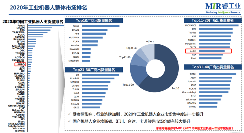 图 / MIR睿工业发布的《2021年中国工业机器人市场年度报告》这些数据会进一步放大市场的期望,同时也是中国国产机器人企业发展的底气。