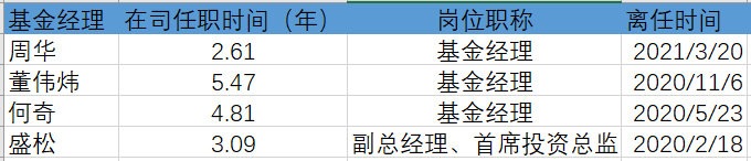 伴随着高层人事动荡,公司基金经理队伍也出现了变动。2020年以来,已有4位基金经理离任。
