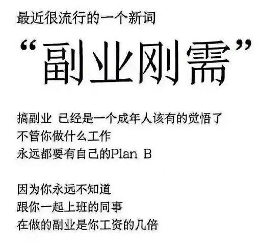 不想只拿死工资,想要副业钱生钱,年轻人有这类想法很正常。但要记住最赚钱的事情写在刑法里,轻松躺赚的事情或许有,但很难发生在你身上。当一个赚钱的方法被大多数人知道且广而告之的时候,想在这其中赚到大钱对个人的要求其实更高了。