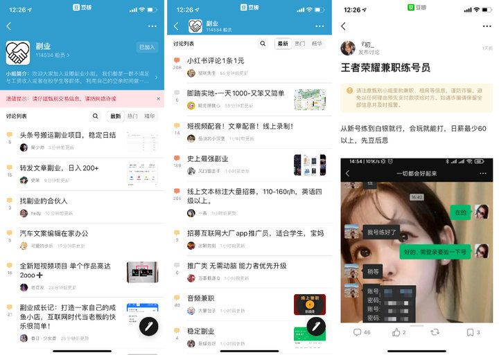 ▲ 在豆瓣副业小组里,会玩就能做王者荣耀练号员