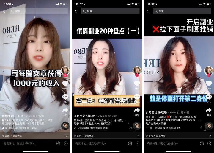 ▲ @阿宝姐讲职场 中关于副业的视频截图