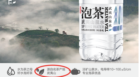 但并不是所有的产品都适合营销“原产地”。新浪财经注意到,今年,农夫山泉推出一款武夷山泡茶水,并且在品宣上强调水源地为“名茶产地武夷山”。